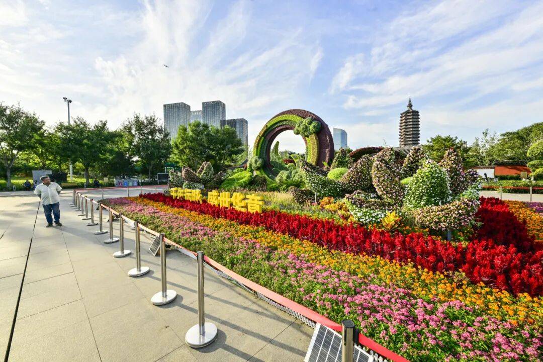 正在大运河文明旅逛景区南区主通道的“运河情”中心花坛,则将双节的“家邦情怀”与副核心发达生机密切相连。